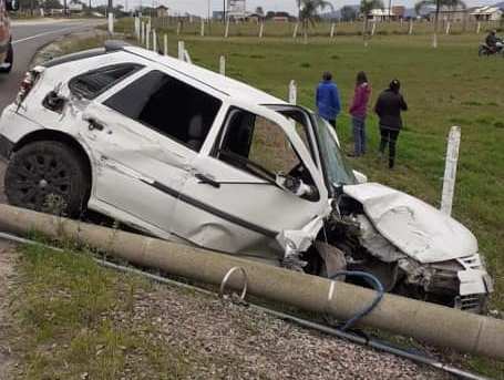 Um carro saiu da pista e bateu em um poste, que caiu. Ao chegar no local, a guarnição constatou que o condutor havia sido levado por populares ao hospital. Foi realizado isolamento da cena até a chegada da PRE, que ficou no aguardo da Celesc.