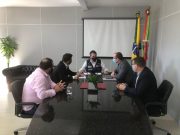 Os prefeitos de Braço do Norte, Beto Kuerten Marcelino, Grão-Pará, Márcio Borba Blasius, e de Rio Fortuna, Lindomar Ballmann, e o diretor...