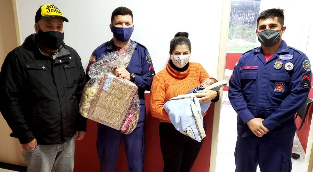 Uma família fez questão se visitar a unidade operacional e agradecer aos bombeiros por terem salvo um bebê recém-nascido.