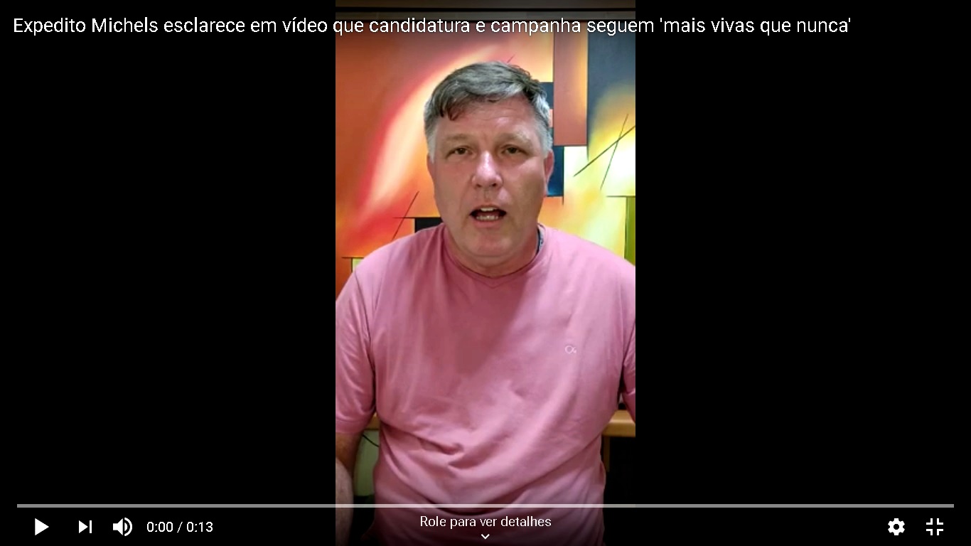 O candidato a prefeito em Capivari de Baixo, Expedito Michels (Cidadania) divulgou, na tarde desta segunda-feira (9), um vídeo respondendo a boatos que estaria afirmando que ele e o seu postulante ao cargo de vice-prefeito, Aurimar da Silva, o Aurimar da Saúde (Cidadania), estão desistindo de concorrer às eleições do próximo dia 15.