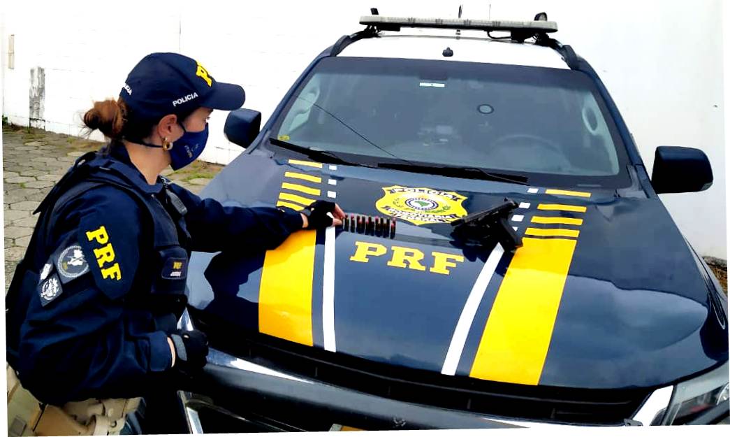 Uma pistola Taurus calibre 380, carregada e com numeração raspada, foi tirada de circulação por policiais rodoviários federais de Tubarão, por volta de 15h30 de sexta-feira (4), na BR-101.