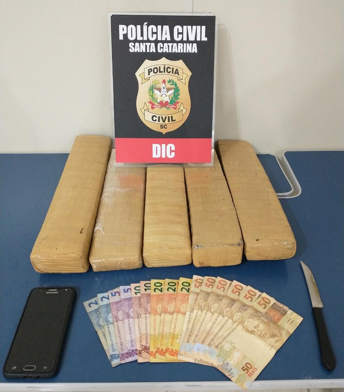 Seis quilos de maconha divididos em cinco tijolos e R$ 394 foram apreendidos na manhã desta segunda-feira (7), em Tubarão. A droga estava escondida na casa de um homem de 29 anos suspeito de tráfico de drogas no bairro Passagem.