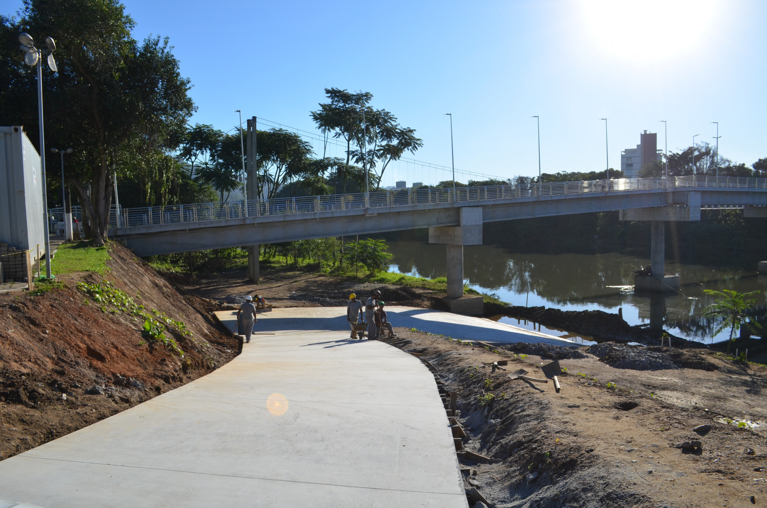 A construção da primeira rampa náutica sob a passarela Ângelo Zaboti, na margem direita, está na reta final. Com a concretagem da rampa de acesso na última sexta-feira (11), as obras estão 80% concluídas.