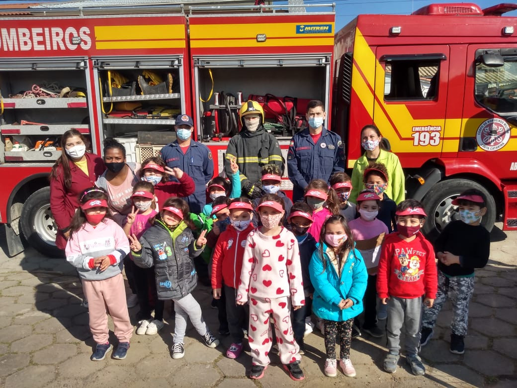 As turminhas do Pré I e Pré II, do CEI Leonor Lima Brasil, receberam nesta quinta-feira (8), a visita dos bombeiros do 8º Batalhão de Bombeiros Militar da cidade de Tubarão.