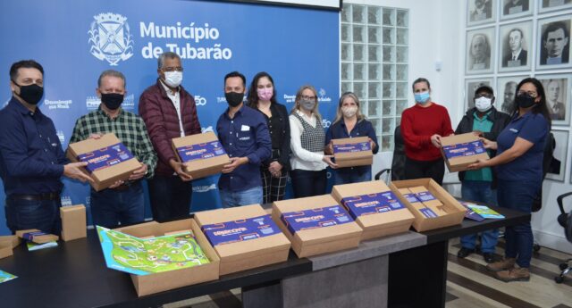 A prefeitura de Tubarão recebeu, nesta quarta-feira (6), 14 kits de educação ambiental produzidos pela Tubarão Saneamento que serão distribuídos entre as escolas de educação básica do município. A proposta dos kits é estimular as boas práticas ambientais, como o consumo consciente da água potável, através de brincadeiras no jogo de tabuleiro, caderno de atividades, dominó e jogo da memória.