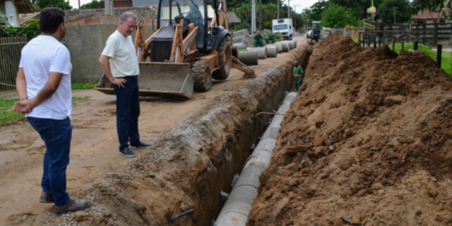 O prefeito Joares Ponticelli e o secretário de Infraestrutura Guilherme Daufemback fizeram nesta segunda-feira (4) uma vistoria em diversas obras que estão em andamento. Uma delas foi a rua Tenente João Luiz Maus, que liga a região do Campestre ao São Clemente, que recebe o sistema de drenagem antes do início da pavimentação asfáltica.