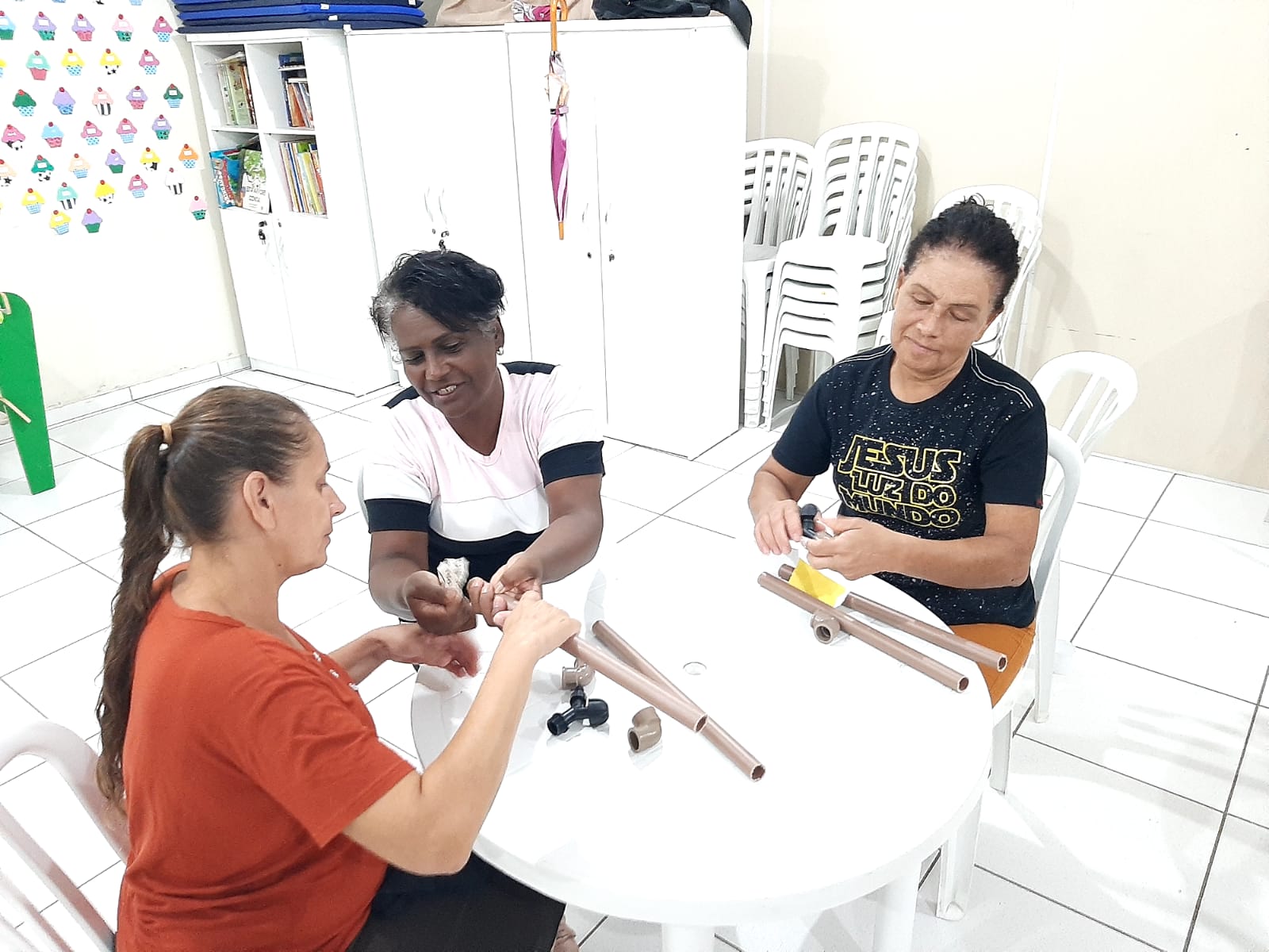 Diversas mulheres também participaram de um curso de encanamento e assistiram palestras educativas com o engenheiro ambiental Caio Reis sobre questões de sustentabilidade e uso racional da água.