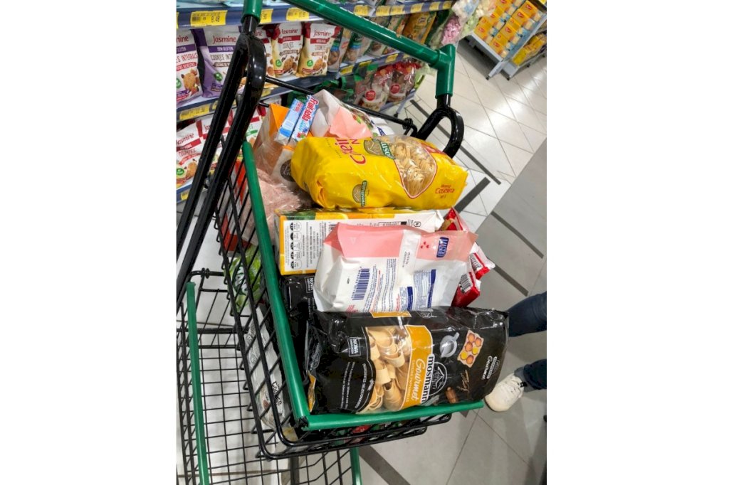 A quantidade apreendida de produtos foi a seguinte: 11 caixas de bala; 2 kg de sal; 2kg de sal rosa; 1 litro de suco; 3kg de macarrão; 2 pacotes de pipoca de micro-ondas; 2 pacotes de torresmo; 1 pacote de ração para gato; 2 pacotes de café solúvel; 2 unidades de café de pote; 2 pacotes de suco; 2 pacotes de ameixa; 4 pacotes de biscoito e 07 caixas de café solúvel expresso.