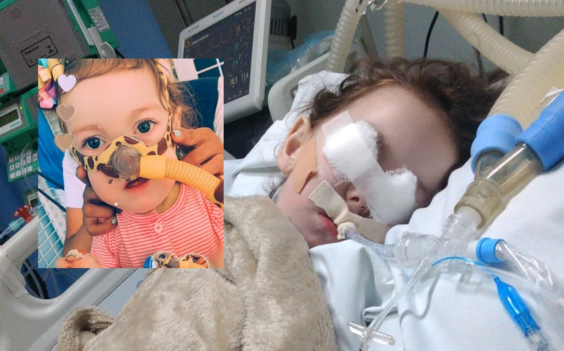Eloah Lemos da Silva, de 3 anos, está intubada com estado de pneumonia grave, na emergência do Hospital Nossa Senhora da Conceição (HNSC), em Tubarão, mas precisa urgentemente de leito na Unidade de Terapia Intensiva (UTI) Pediátrica da unidade, mas não há vagas.