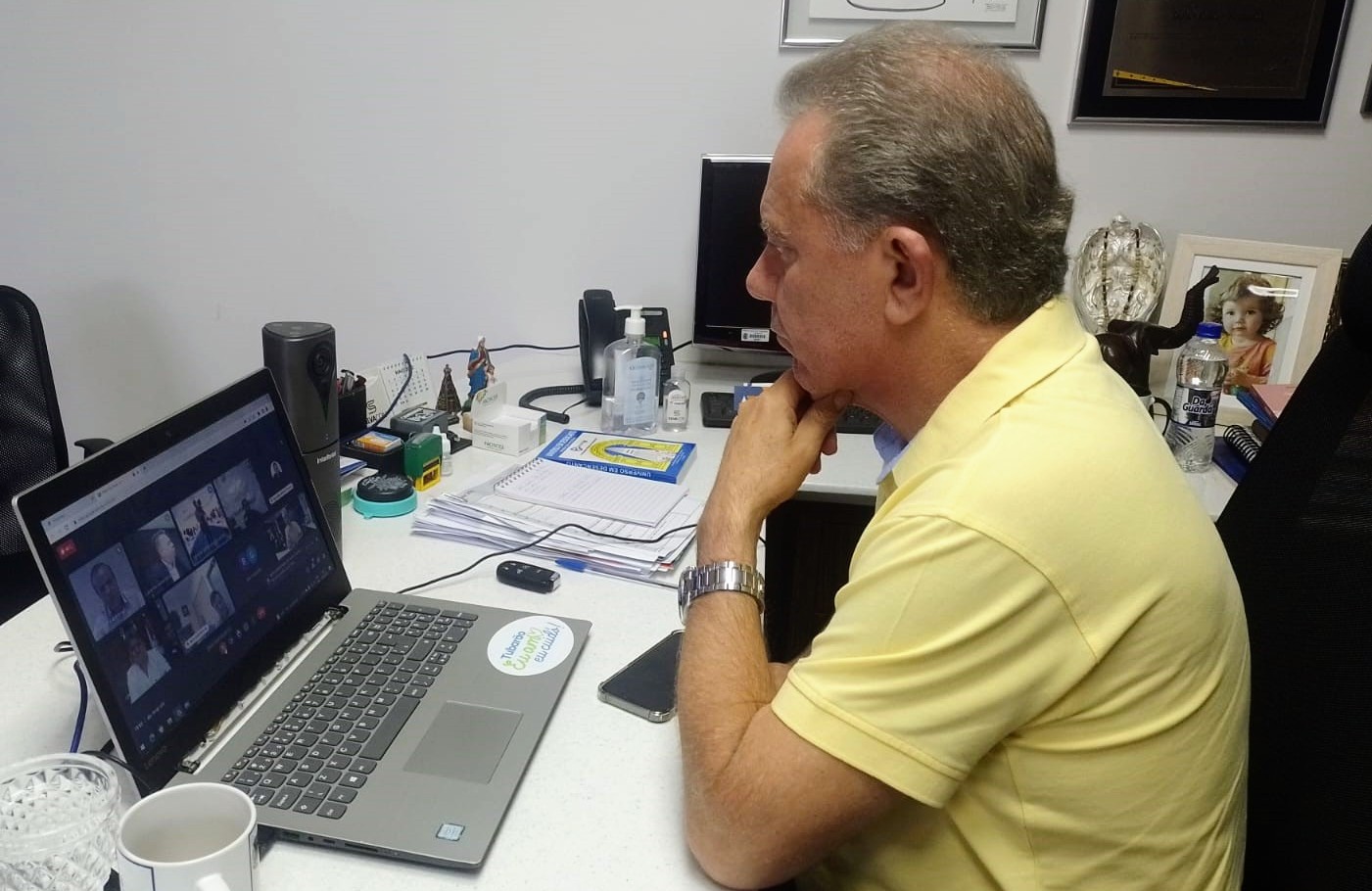 O prefeito Joares Ponticelli participou, nesta terça-feira (10), de uma reunião virtual com o governador Carlos Moisés sobre a situação dos prejuízos causados pelos alagamentos em Santa Catarina. Vários outros prefeitos também participaram.