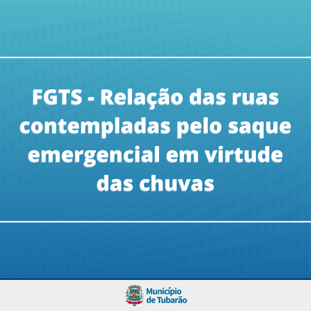 A Caixa Econômica Federal divulgou a relação das ruas nos bairros cujos moradores foram atingidos pela enchente do Rio Tubarão, consequência das chuvas registradas no início do mês de maio e que, por isso, terão acesso aos seus saldos do Fundo de Garantia por Tempo de Serviço (FGTS).