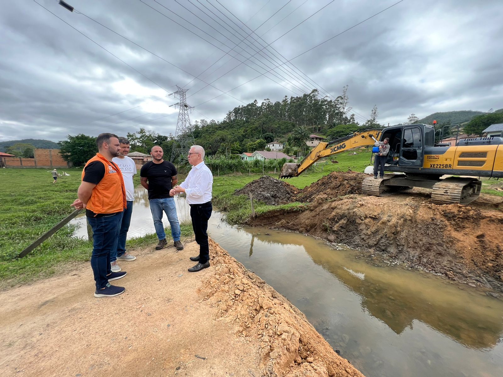 O prefeito Jairo Cascaes acompanhou o início dos trabalhos que vão promover maior vazão da água na região.