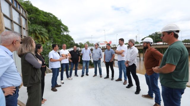 O prefeito Estêner Soratto e o vice Denis Matiola realizaram, nesta quinta-feira (26), uma vistoria técnica nas obras de reforma e restauração do deck do casario da beira-rio. Acompanhados por secretários e representantes do Conselho de Entidades de Tubarão (CONSET), os gestores conferiram o avanço dos trabalhos que prometem devolver à área central um dos seus principais espaços de lazer e contemplação.