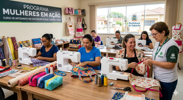 O Programa Mulheres em Ação deu início ao seu calendário de atividades de 2026 com foco no empreendedorismo e na promoção social. Em uma parceria entre a Prefeitura de Tubarão (via Secretaria de Assistência Social, Mulher e Família), o Sindicato dos Produtores Rurais e o Senar/SC, foi realizado nesta semana o curso de Artesanato de Costura em Tecidos.
