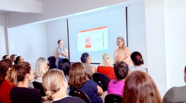 Após a palestra, a Fundação ofereceu um café especial às participantes. O momento foi planejado para criar um ambiente acolhedor, facilitando a troca de experiências entre as colegas de profissão e fortalecendo os vínculos dentro da rede municipal de ensino.