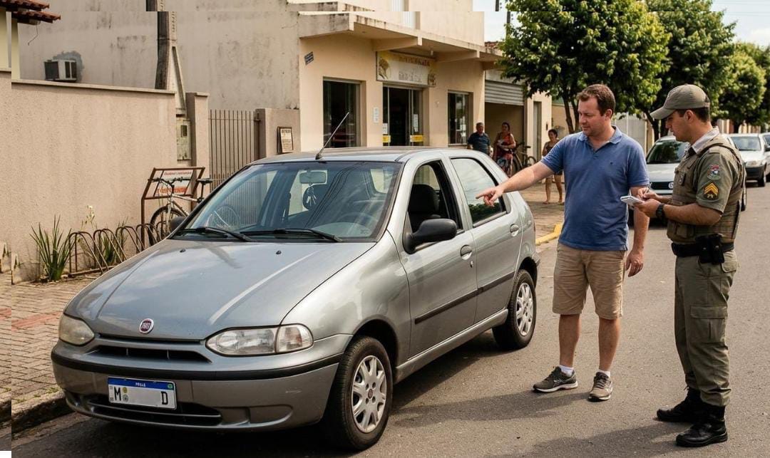 Ação: Após confirmar a placa, o homem acionou a Polícia Militar via COPOM (190) às 12h07 para oficializar a recuperação.
