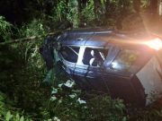Motorista fica ferido após carro bater em poste e capotar em ribanceira na SC-108,...