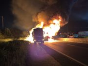 Caminhão pega fogo e causa bloqueio total da BR-101
