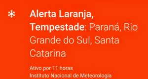 Alerta Laranja para: Paraná, Santa Catarina e Rio Grande do Sul