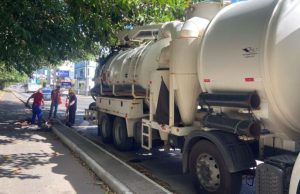Defesa Civil e Infraestrutura atuam juntas na desobstrução de bocas de lobo e galerias pluviais com caminhão hidrojato